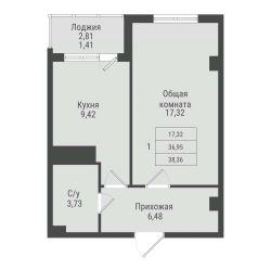 Продаётся 1-комнатная квартира в строящемся доме (дом 2, этап 5), срок сдачи: I-кв. 2032, общей площадью 38.36 кв.м., на 3 этаже. Новый жилой комплекс от Специализированного застройщика "ПАРК ПОБЕДЫ" расположен по адресу: г. Красноярск, по ул. Калинина.