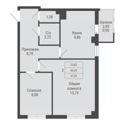 Продаётся 2-комнатная квартира в строящемся доме (дом 2, этап 5), срок сдачи: I-кв. 2032, общей площадью 47.39 кв.м., на 3 этаже. Новый жилой комплекс от Специализированного застройщика "ПАРК ПОБЕДЫ" расположен по адресу: г. Красноярск, по ул. Калинина.