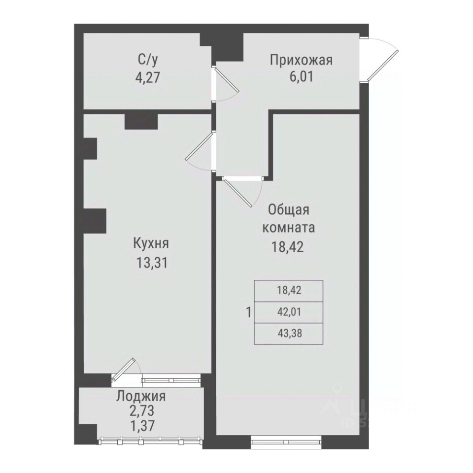 Продаётся 1-комнатная квартира в строящемся доме (дом 2, этап 5), срок сдачи: I-кв. 2032, общей площадью 43.48 кв.м., на 7 этаже. Новый жилой комплекс от Специализированного застройщика "ПАРК ПОБЕДЫ" расположен по адресу: г. Красноярск, по ул. Калинина.