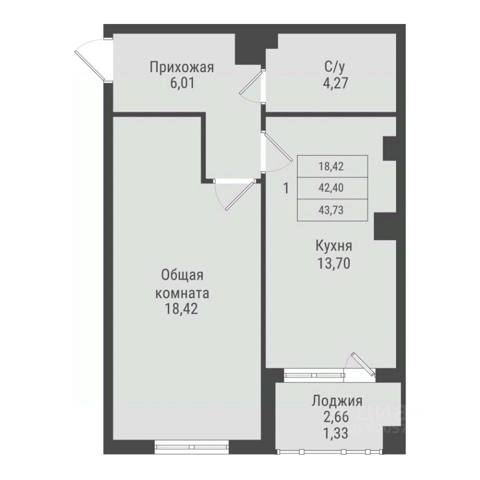 Общая площадь43,73 м²