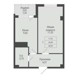 Продаётся 1-комнатная квартира в строящемся доме (дом 2, этап 5), срок сдачи: I-кв. 2032, общей площадью 38.39 кв.м., на 3 этаже. Новый жилой комплекс от Специализированного застройщика "ПАРК ПОБЕДЫ" расположен по адресу: г. Красноярск, по ул. Калинина.