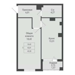 Продаётся 1-комнатная квартира в строящемся доме (дом 2, этап 5), срок сдачи: I-кв. 2032, общей площадью 43.38 кв.м., на 6 этаже. Новый жилой комплекс от Специализированного застройщика "ПАРК ПОБЕДЫ" расположен по адресу: г. Красноярск, по ул. Калинина.