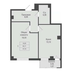 Общая площадь47,18 м²