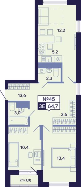 64,7 м²