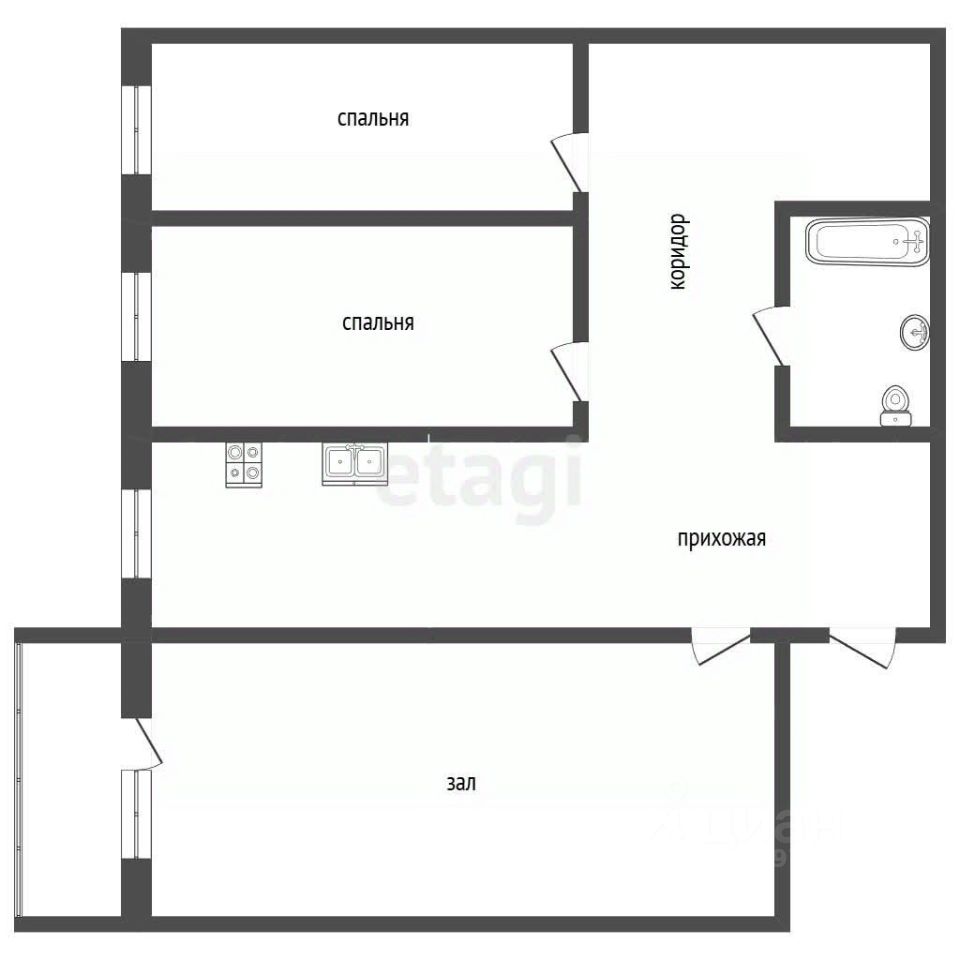 Две просторные спальни, кухня, зал - с видом во двор дома. Солнечная сторона! Совмещенный санузел.