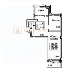 Площадь: 42,7 м + балкон