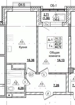 Продаётся 1-комнатная квартира в строящемся доме (блок Б), срок сдачи: IV-кв. 2027, общей площадью 43.37 кв.м., на 11 этаже. Новый жилой комплекс "Город в парке" от Специализированного застройщика "СТК-2023" расположен в г. Якутск по ул. Тракт Вилюйский 4км.