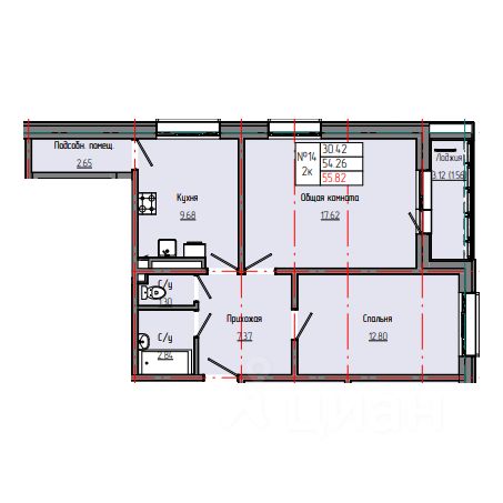 Общая площадь55,82 м²