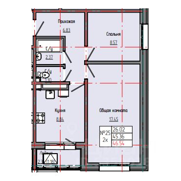 Продаётся 2-комнатная квартира в строящемся доме (Корпус С3В (сектор С)), срок сдачи: I-кв. 2027, общей площадью 46.54 кв.м., на 6 этаже. Квартал Звёздный - комплексная застройка квартала "Воинская часть" ГО "город Якутск" (Участок 5.1.) А2, А4, А6 по строительному адресу: Покровское шоссе, 7 км.