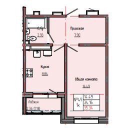 Общая площадь35,34 м²