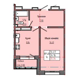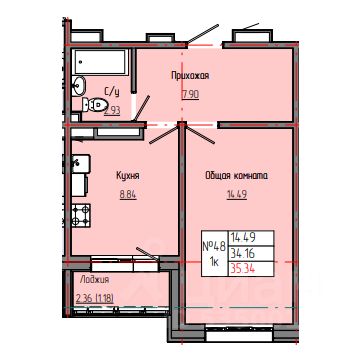 Общая площадь35,34 м²