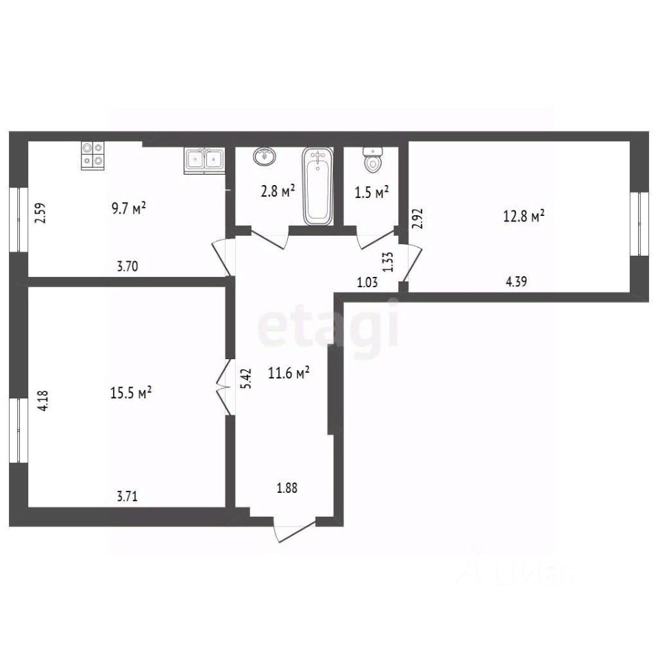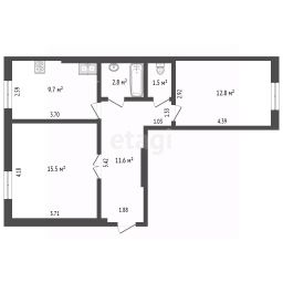 - Общая площадь 53,9 кв.м.