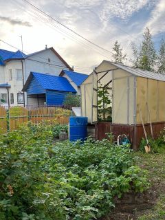 - картофельное поле, зелень, грядки и теплица для выращивания овощей.