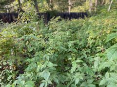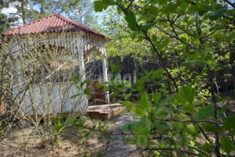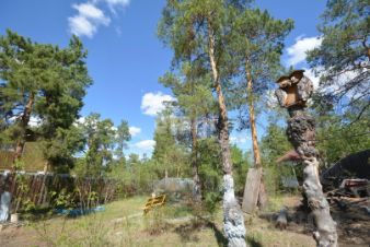 Участок озеленен: сосны, березы, яблони сибирские, церепадум Мичурина, сакура местная, черемуха, рябина, боярышник, бузина, сарданы фиалки, незабудки.