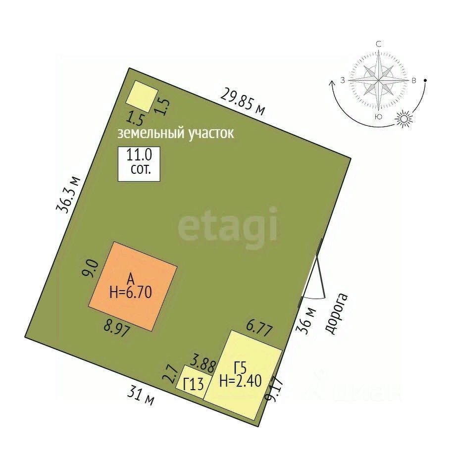 На участке квадратной формы находится детская площадка с искусственным покрытием, мангальная зона. Огорожен профлистом, с грунтовыми подъездными путями.