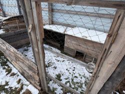 Участок огорожен забором из профлиста, есть откатные ворота. На участке теплый гараж на одну машину,есть сарай, курятник, посажено очень много кустарников и деревьев.