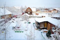 Возле дома молодые деревья (лиственница, сосна, березы), кусты красной смородины, черёмуха, малина, шиповник, грибница шампиньонов и маслят.