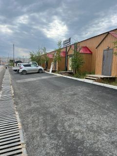 Первая линия дороги. Большая асфальтированная парковка.